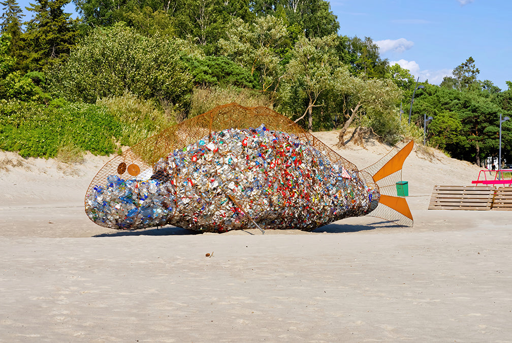 collecting used fishing nets, discarded plastic bottles, cps and plastic waist from